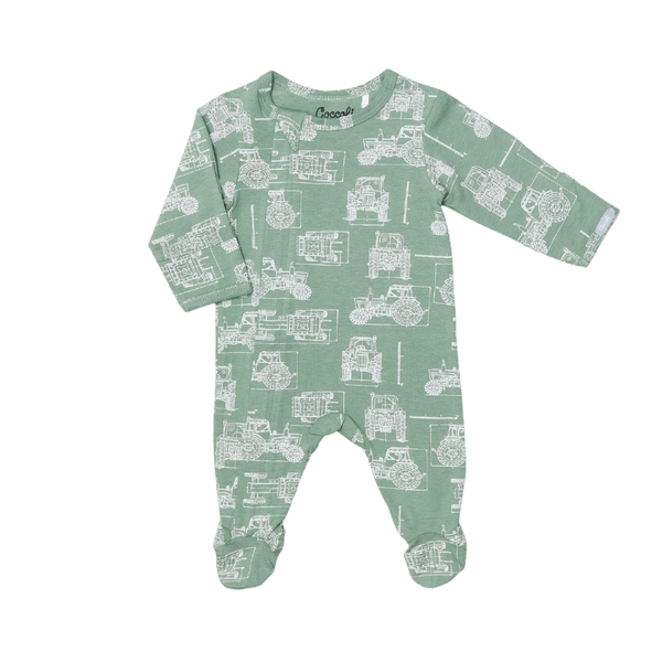 Coccoli Cotton Modal Zipper Footie- Tractors on Lily Pad
