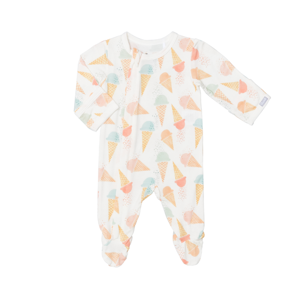 Coccoli Infant/Kid Girl Modal Zipper Footie- Gelato Cones on Cream
