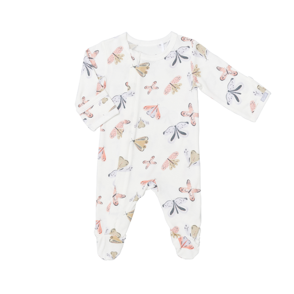 Angel Dear 2 Way Zipper Ruffle Back Footie- Sweet Rose Calico