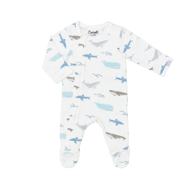 Coccoli Modal Zipper Footie- Ocean Life on Cream
