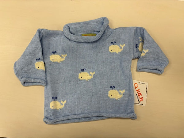 Claver Roll Neck Sweater Beige and White Stripe with Navy Anchor and rope