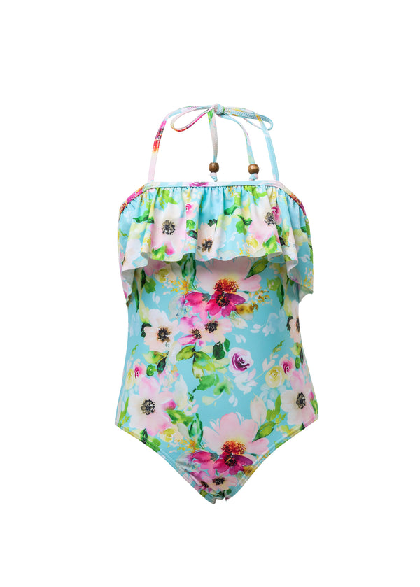 Snapper Rock WATERCOLOR FLORAL FRILL HALTER SWIMSUIT