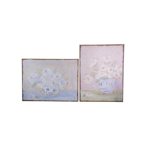 Creative Co-Op Wood Framed Canvas Wall Décor w/ Flowers in Vases, 4 Styles