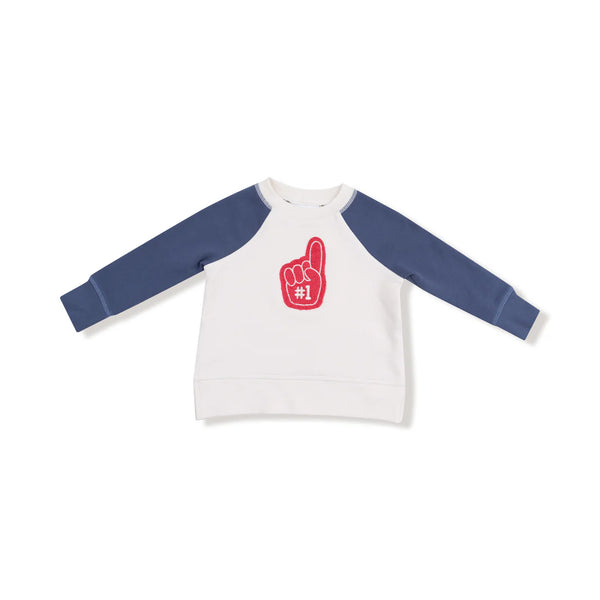 Angel Dear Varsity - Vintage Indigo Raglan Sweatshirt with Red #1 Patch