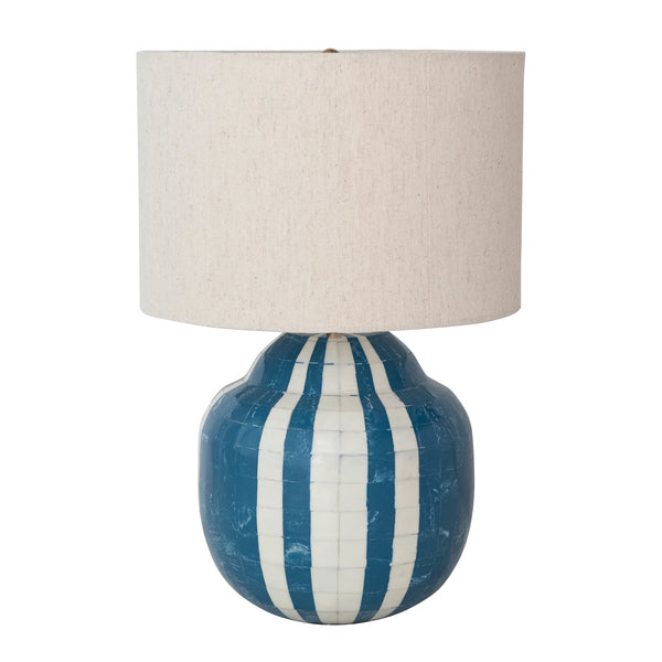 Creative Co-op Marbled Inlaid Resin Table Lamp with Stripes & Linen Shade