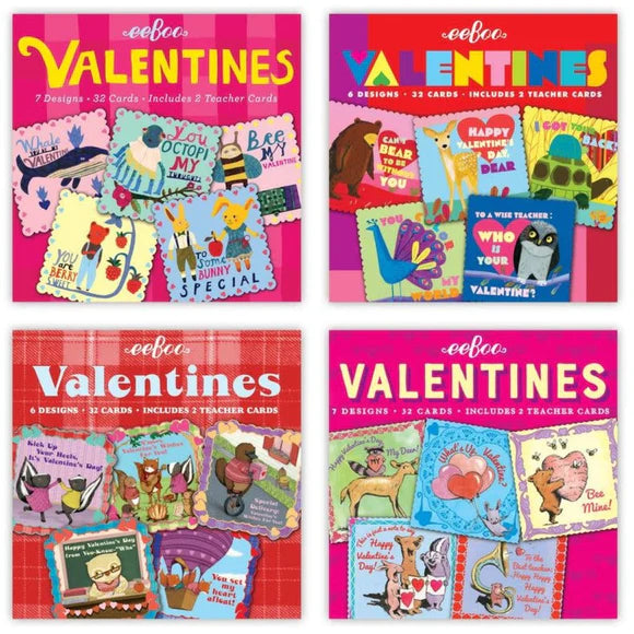 eeBoo Valentine's Cards Set of 32- 6 Designs