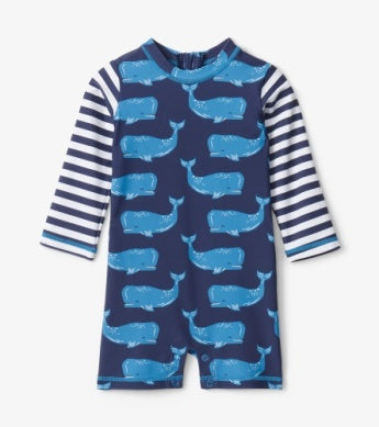 Hatley Block Whales Baby One-Piece Rashguard