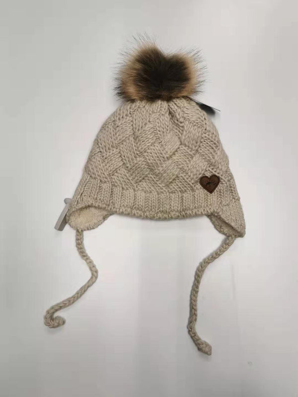 Calikids Knit Cotton hat with Grey fur lining, ear covers and tie