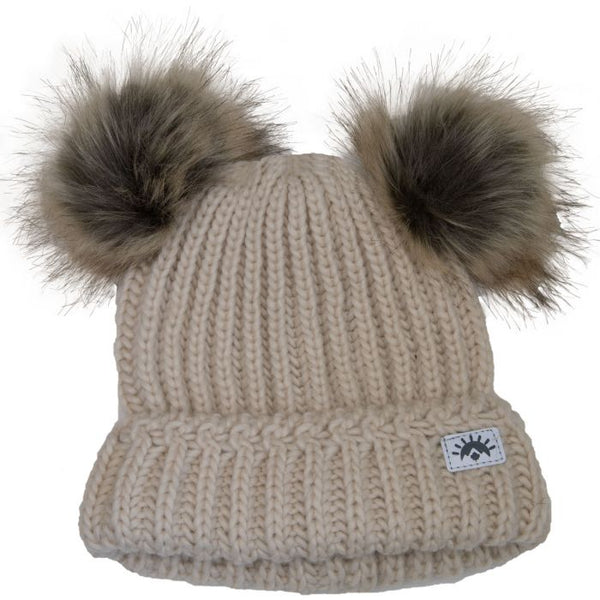 Calikids Knit 2 PomPom Hat - Cream