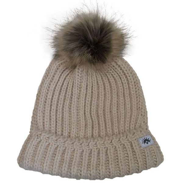 Calikids Girl's Knit Cotton Pom Hat - Sand