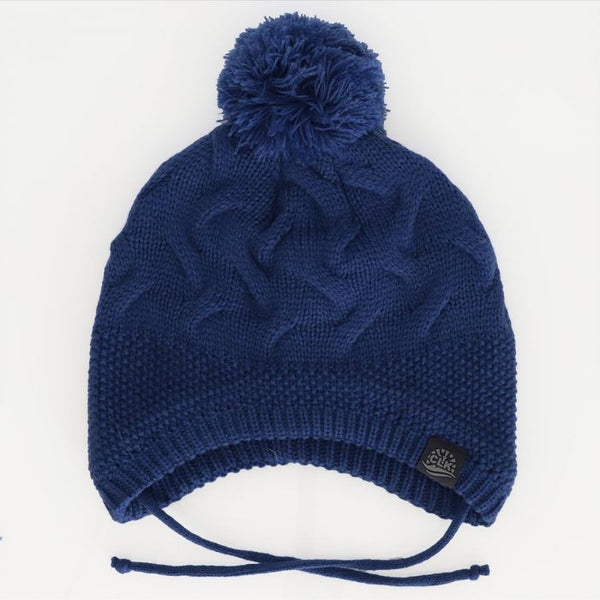 Calikids Boys Cotton Knit Hat with Pom Pom and tie