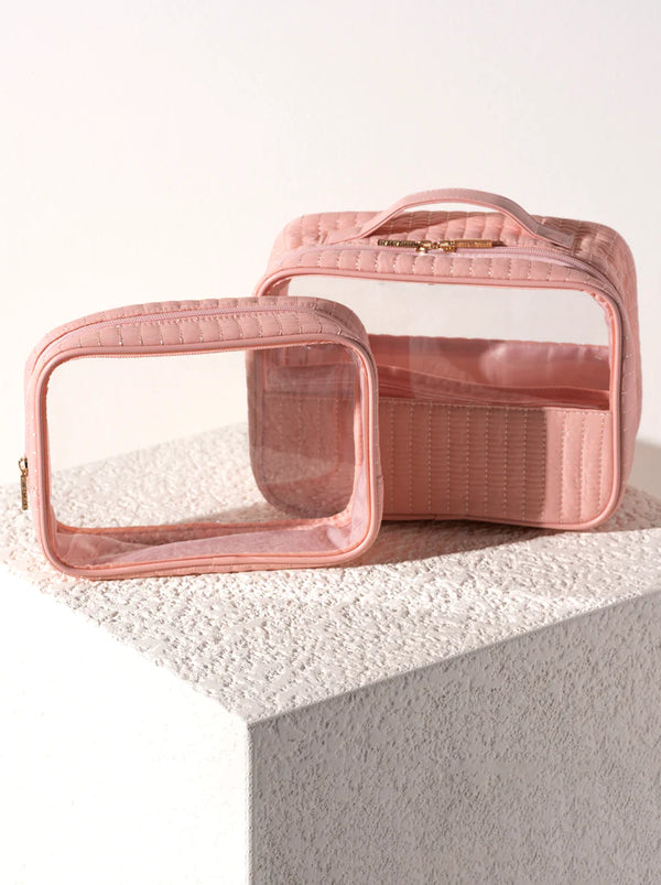 SHIRALEAH EZRA QUILTED NYLON SET OF 2 CLEAR COSMETIC CASES, BLUSH