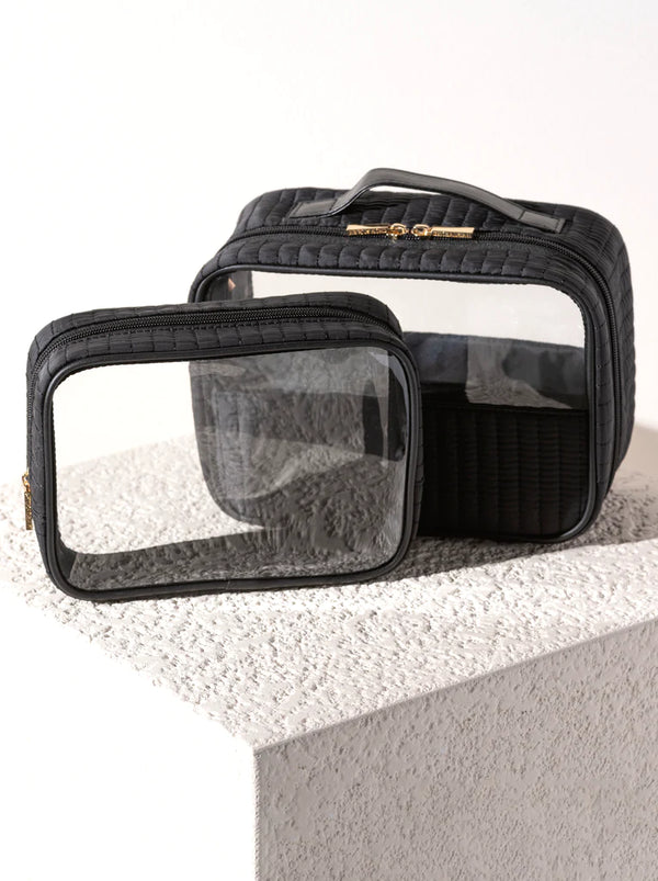 SHIRALEAH EZRA QUILTED NYLON SET OF 2 CLEAR COSMETIC CASES, BLACK