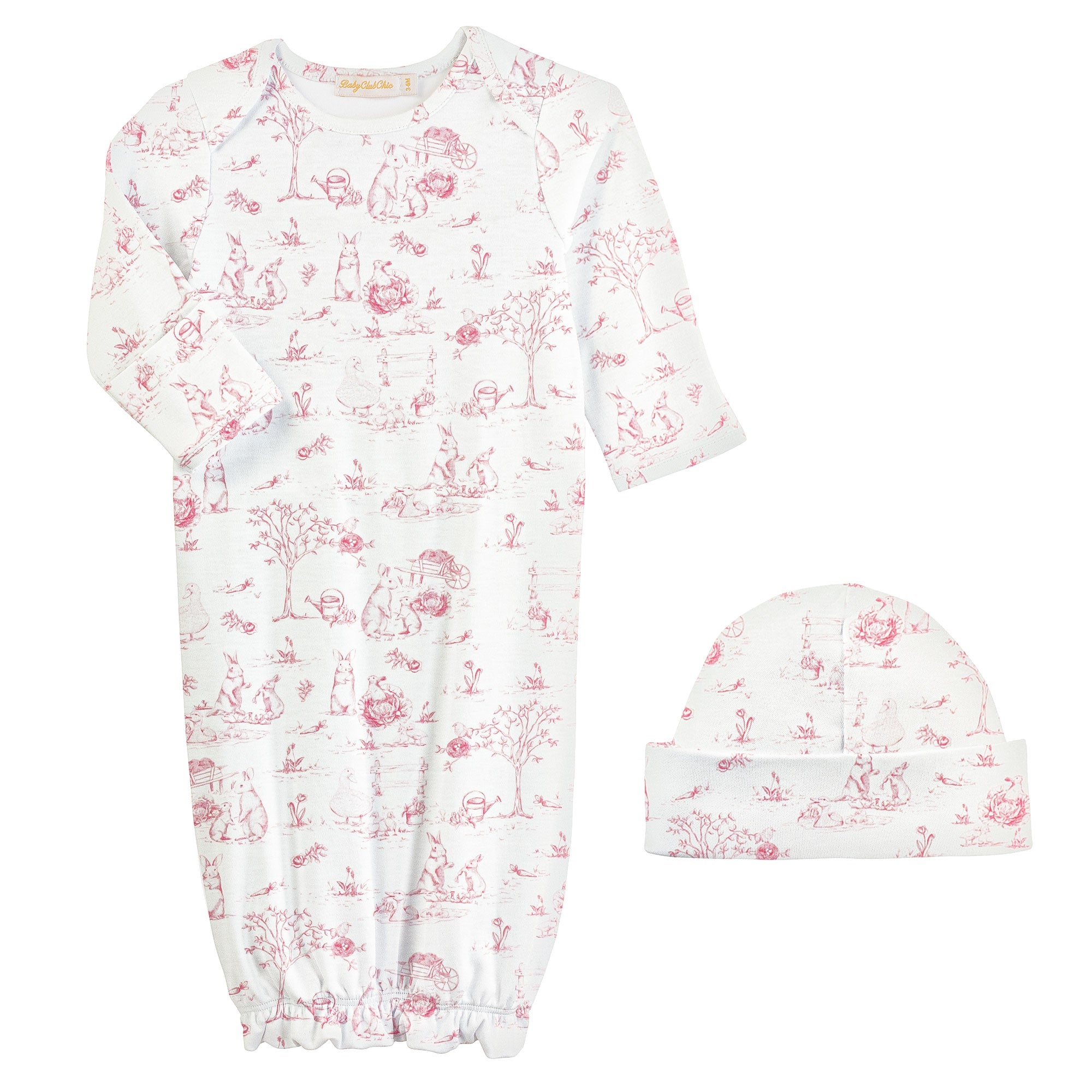 Baby Club Chic Pink Toile Bunnies Printed Gown and Hat