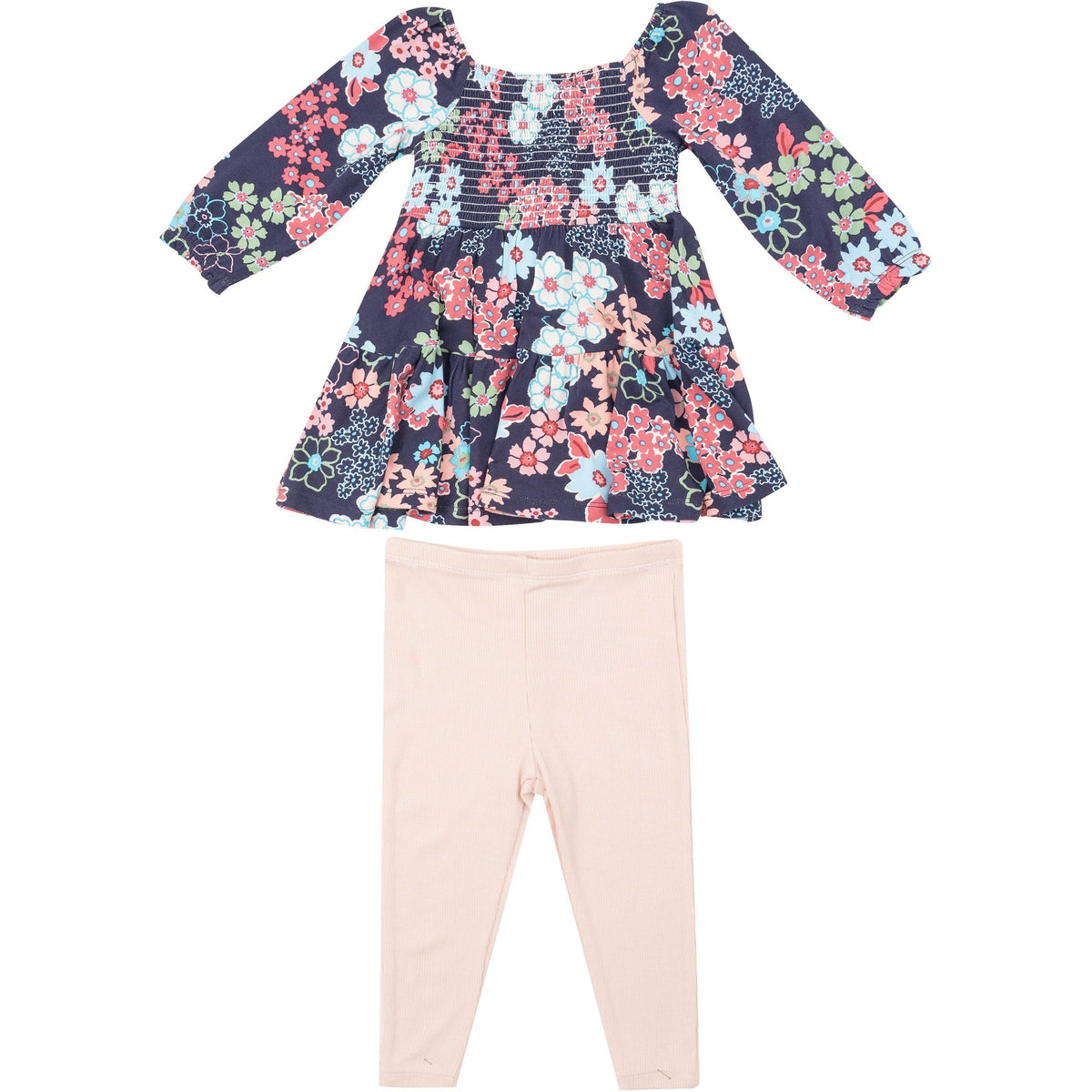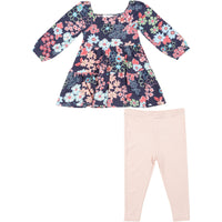 Angel Dear Japonisme Blossom Floral Cap Sleeve Dress + Rib Legging