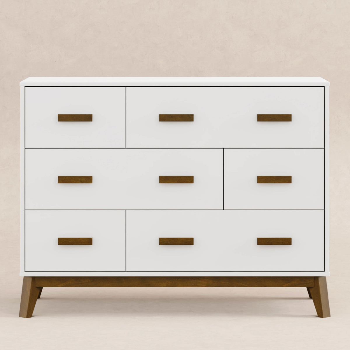 The Scoot 6-Drawer Dresser is the definition of mid-century modern style. The perfect accompaniment to your Scoot 3-in-1 Crib with matching tapered feet and two-toned or solid color detailing. With six smooth-glide drawers, this versatile unit provides a range of practical storage possibilities to suit all of your nursery needs.