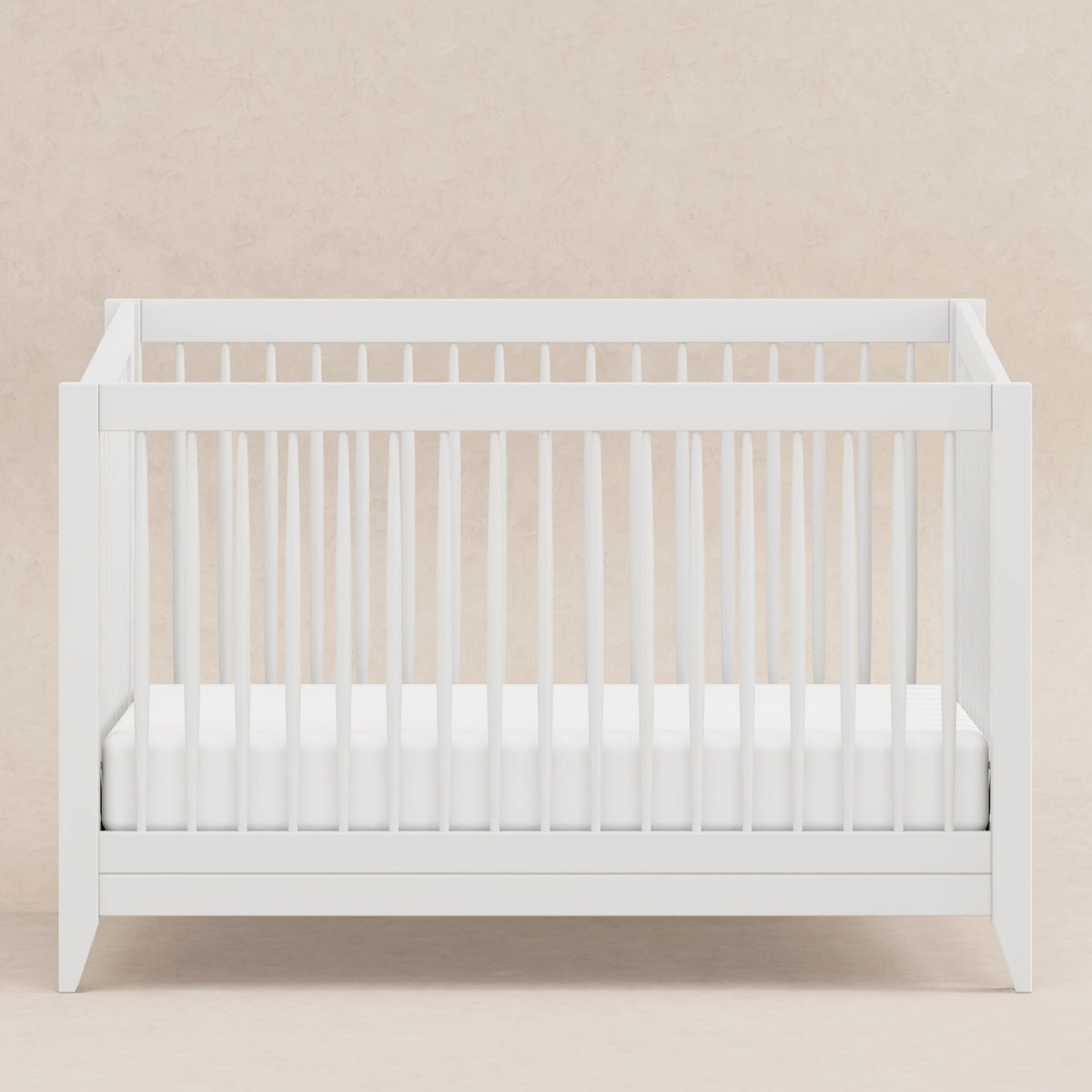 - PLAYFUL TIMELESS DESIGN: Featuring a modern, clean silhouette and classic rounded spindles with a slightly raised back. Flared tapered legs add a playful touch to this sophisticated crib.