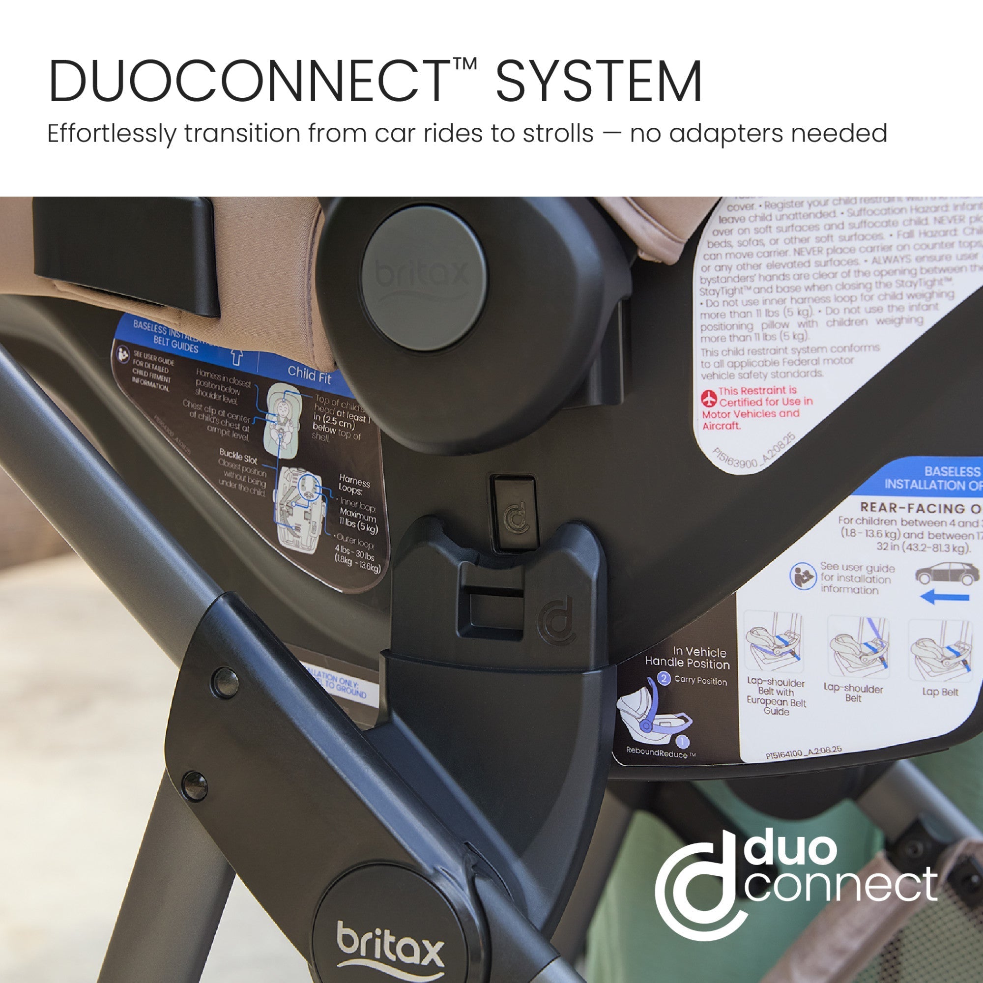 - INFANT CAR SEAT COMPATIBLE: Easily pairs with select Britax® infant car seats with the use of adapters (sold separately). Also compatible with select competitive seats. Visit https://us.britax.com/support/instructional-videos-and-user-manuals/compatibility-charts for additional information.