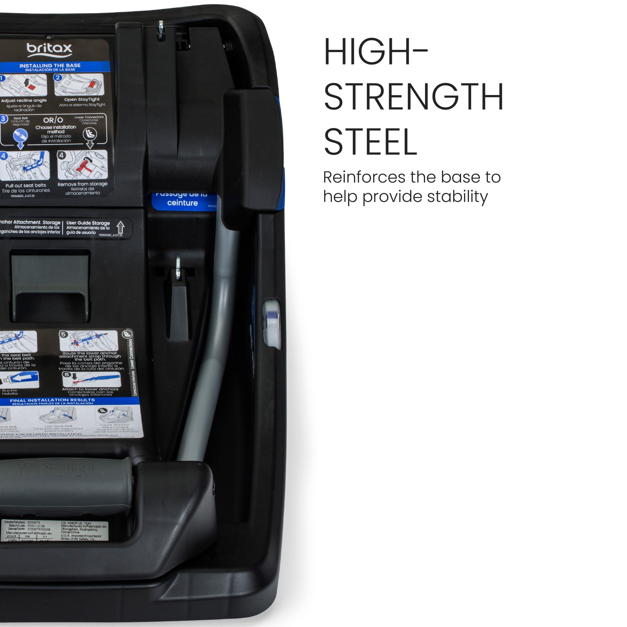 - HIGH-STRENGTH STEEL: Reinforces the car seat base to help provide additional stability.