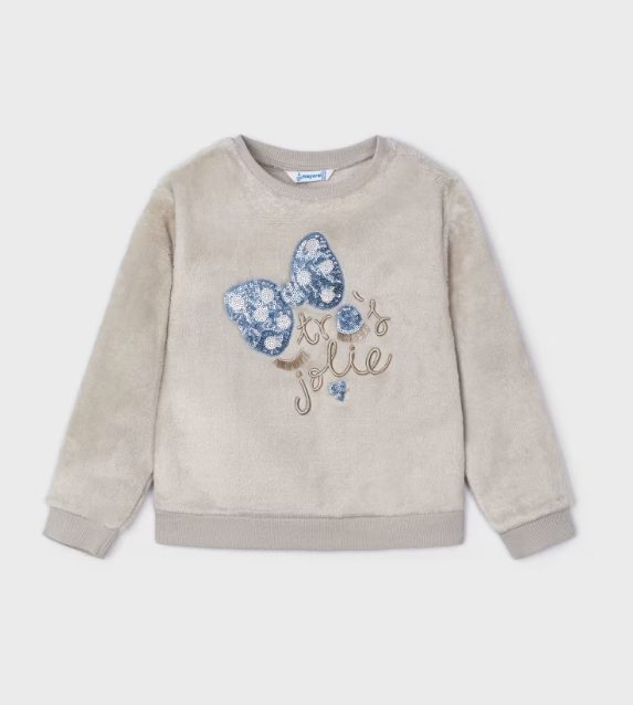 Mayoral Girls Faux Fur Stone Sweatshirt with Blue Sequin Bow