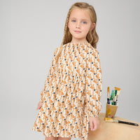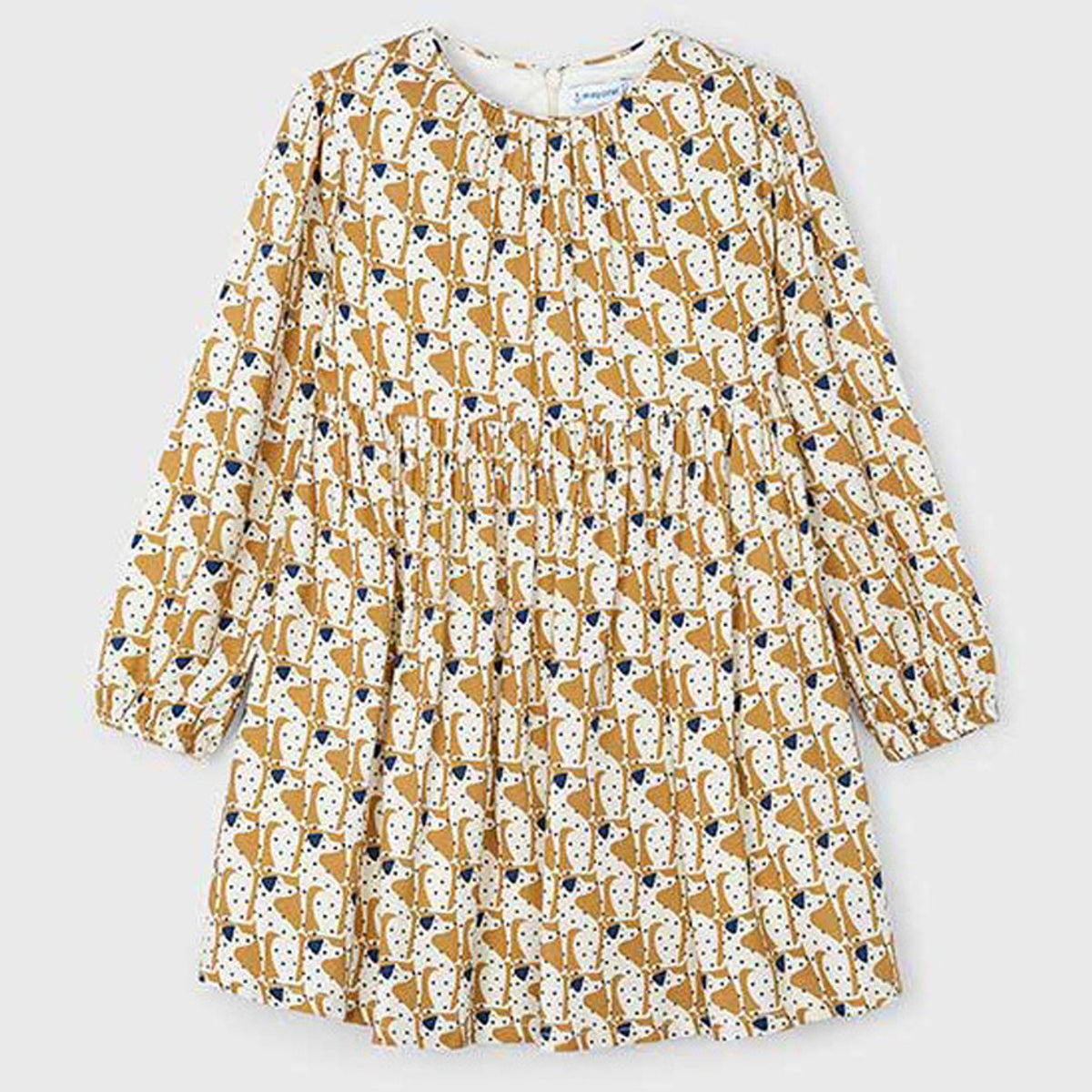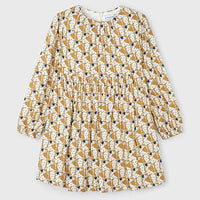 Mayoral Girl's Flowy Puppy Print Dress Caramel and Navy