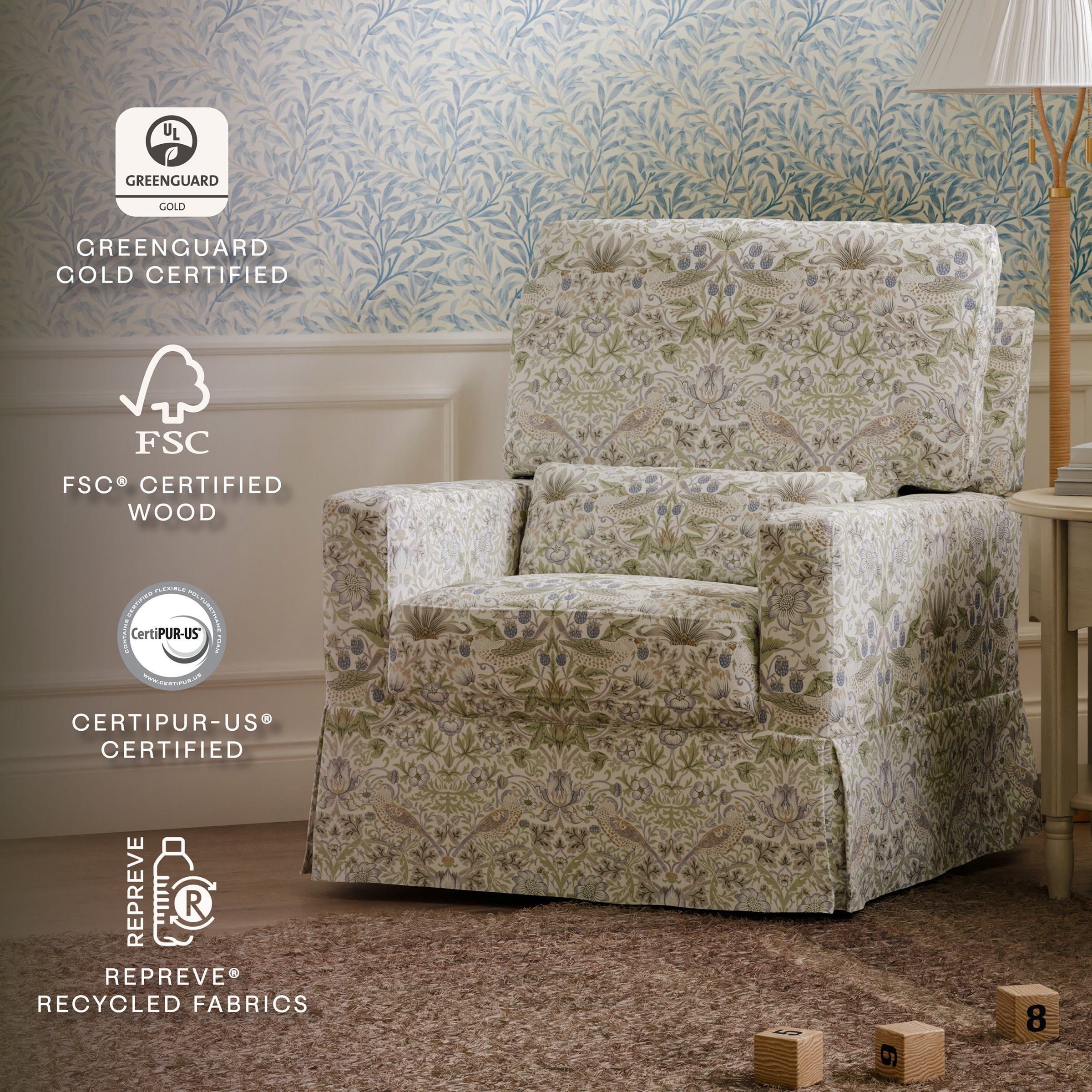 - BREATHE EASY: Foam used in the seat meets all CA TB117-2013 flammability requirements and is CertiPUR-US® certified, certifying the foam is made without PBDE or Tris flame retardants, heavy metals, formaldehyde, CFCs and phthalates regulated by the CPSC.