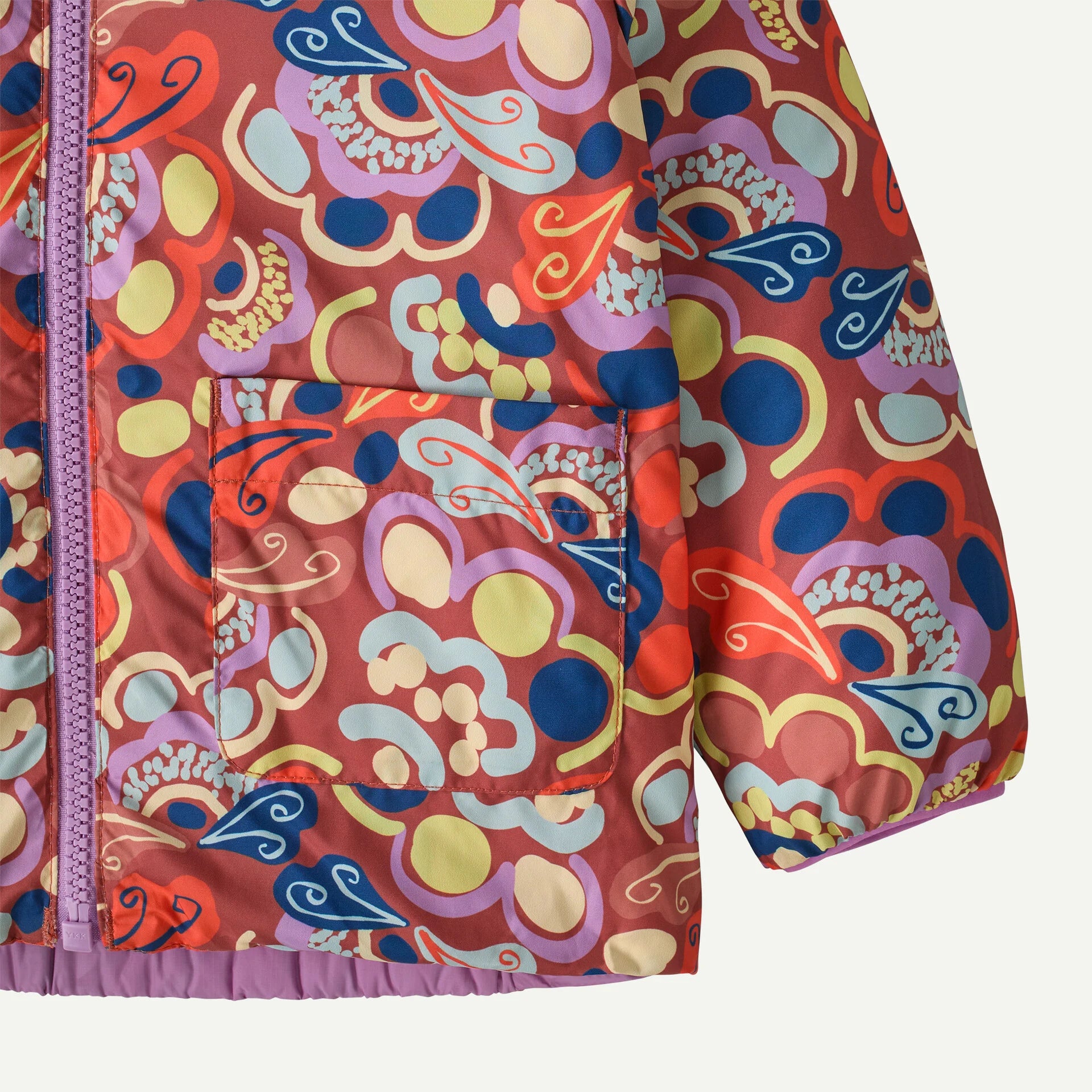 Keep them warm with the Baby Reversible Down Sweater™ Hoody. It has a lightweight, windproof 1.6-oz 30-denier NetPlus® 100% postconsumer recycled nylon ripstop shell made from recycled fishing nets to help reduce ocean plastic pollution; with a durable water repellent (DWR) finish made without intentionally added PFAS. It reverses to a contrasting print made of 100% recycled polyester taffeta fabric. Insulated with 700-fill-power 100% Recycled Down (a blend of duck and goose down and waterfowl feathers reclaimed from down products) for compressible warmth. Made in a Fair Trade Certified™ factory.